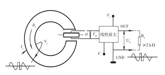 霍爾電流傳感器以霍爾元件為核心,用于隔離檢測(cè)電流的傳感器。當(dāng)電流流過一根導(dǎo)線時(shí),將在導(dǎo)線周圍產(chǎn)生磁場(chǎng),磁場(chǎng)的大小與流過導(dǎo)線的電流大小成正比,這一磁場(chǎng)可以通過軟磁材料來聚集,然后由霍爾元件來檢測(cè),用霍爾元件在磁芯氣隙處感應(yīng)原邊電流IP的大小和方向?;魻栐妮敵鲭妷?,經(jīng)過信號(hào)處理電路,使傳感器的輸出可以反映被測(cè)電流的大小。